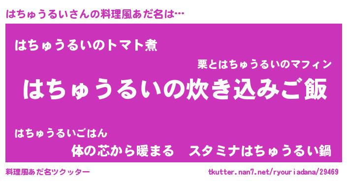 | ヘコむあだ名 | 『なまこ酢』『はちもー』『はち太郎』 |