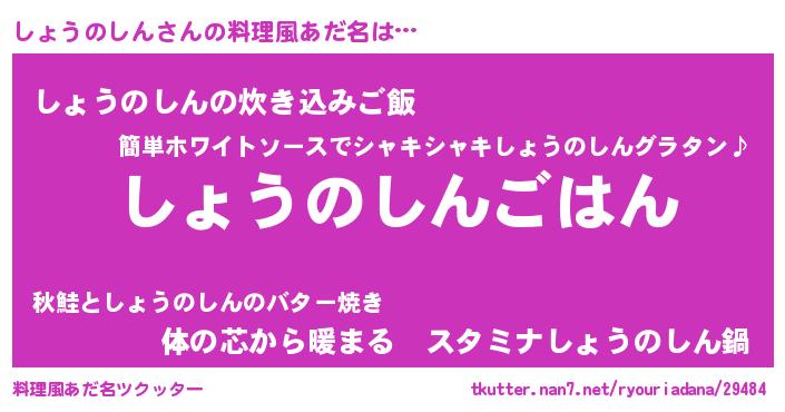 | 男性向けラノベタイトル風あだ名 | 『転生したらしょうのしんだった件』 |