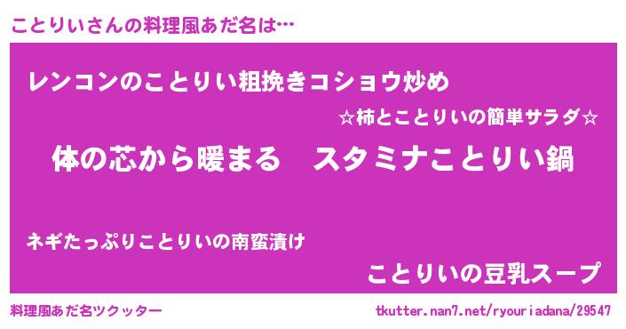 | ヒーロー風カッコイイあだ名 | 『ウルトラことりいマン』『黄金騎士コト』 |