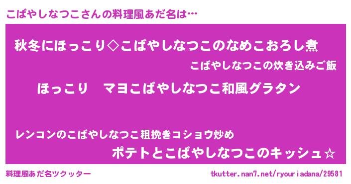 | 胡散臭い通販商品みたいなあだ名 | 『あなたにだけ特別に提供する100年もののヴィンテージワイン…その名も「こばやしなつこ」』 |