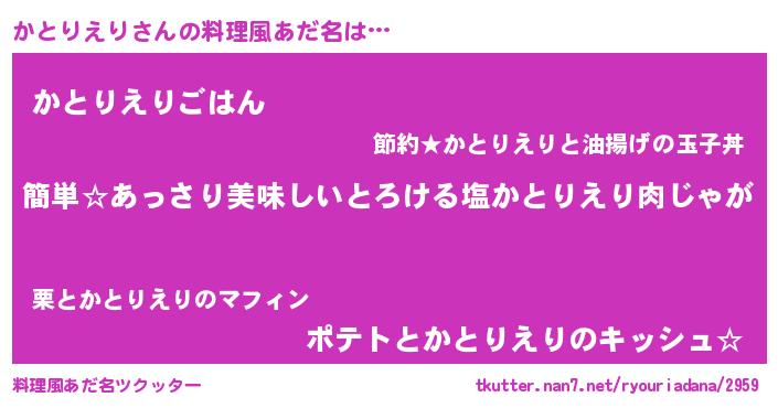 | 意味不明あだ名 | 『永久保存かとりえり』 |