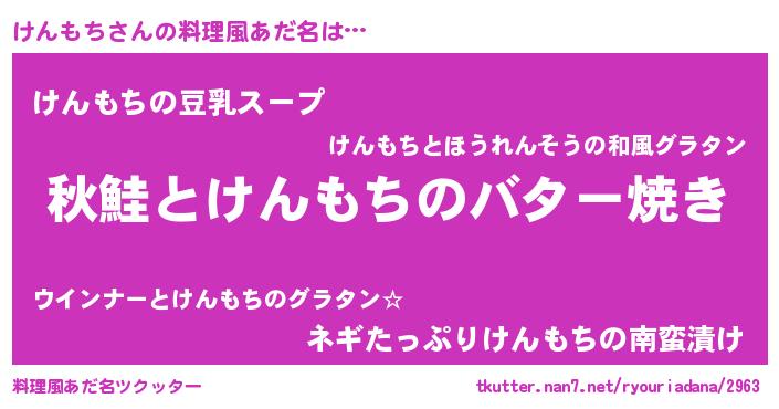 | ヘコむあだ名 | 『けんもち(笑)』『けんを』 |