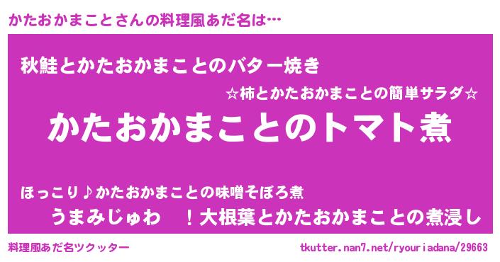 | 男性向けラノベタイトル風あだ名 | 『おまえをオタクにしてやるから、俺をかたおかまことにしてくれ! 』 |