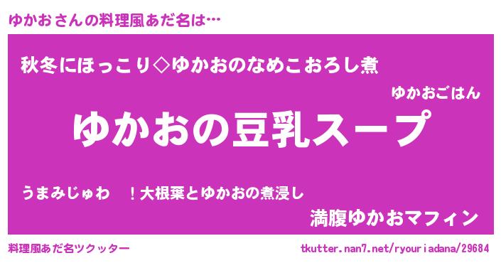 | 女子向けラノベタイトル風あだ名 | 『ゆかおは平凡を望む』『ゆかおの婚約者』 |