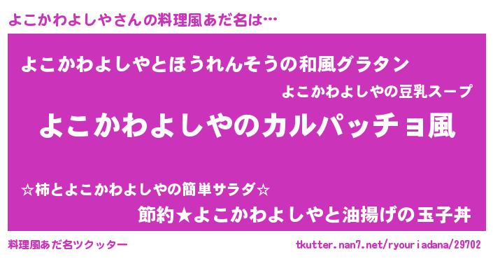 | 男性向けラノベタイトル風あだ名 | 『魔弾の王とよこかわよしや』 |
