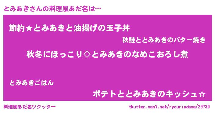 | 男性向けラノベタイトル風あだ名 | 『とみあきに滅ぼされるだけの簡単なお仕事です』 |