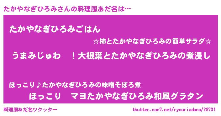 | 欧米人風あだ名 | 『たかやなぎひろみクリステル』 |