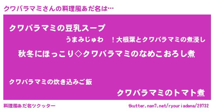 | 意味不明あだ名 | 『とにかく怪しいクワバラマミ』 |