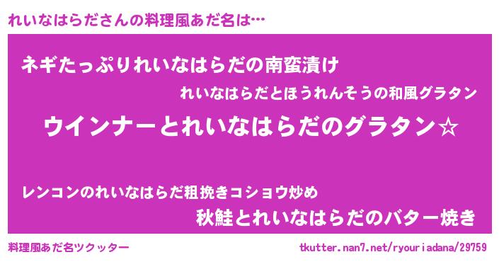 | 意味不明あだ名 | 『れいなはらだフォーエバー』 |