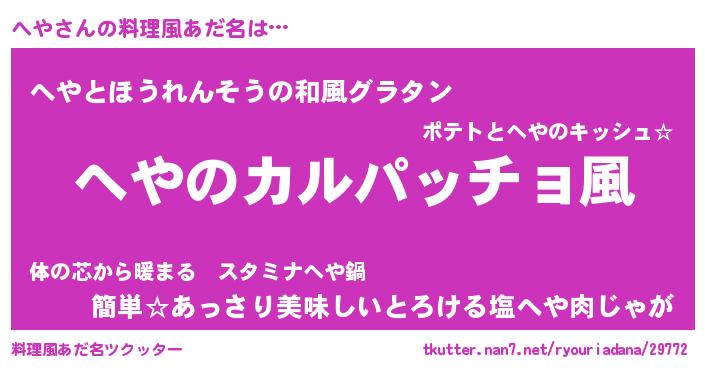 | 意味不明あだ名 | 『住所不定無職へや(3歳)』『永久保存へや』 |