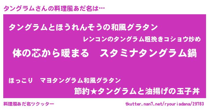 | 男性向けラノベタイトル風あだ名 | 『やはりタングラムの青春ラブコメはまちがっている 』 |