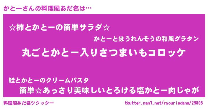 | ヘコむあだ名 | 『かとー(苦笑)』『牛乳』『かと太郎』 |