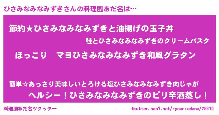 | ヘコむあだ名 | 『ひさふぇ~』『ひさみなみなみずき(爆)』 |