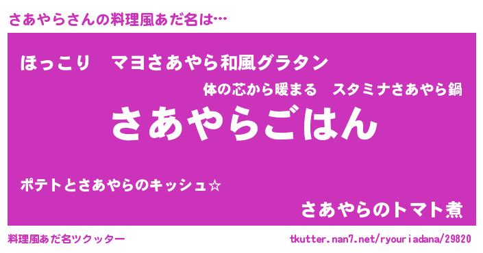 | 男性向けラノベタイトル風あだ名 | 『転生したらさあやらだった件』 |