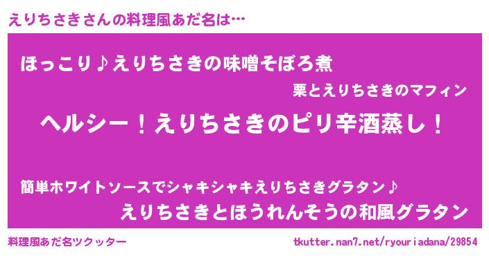 | 男性向けラノベタイトル風あだ名 | 『Re:えりちさきから始める異世界生活』 |