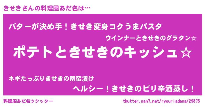 | 男性向けラノベタイトル風あだ名 | 『きせきの嫁は女の子じゃないと思った?』 |