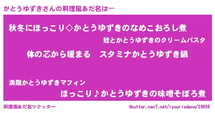 | 恥ずかしいあだ名 | 『かとっちょ』『プリティーかとうゆずき』 |