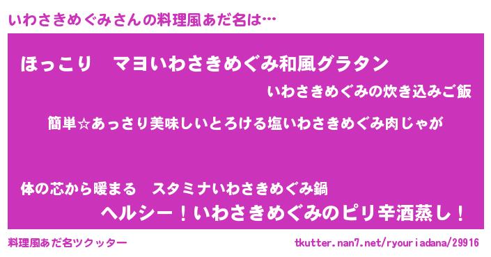 | 意味不明あだ名 | 『永久保存いわさきめぐみ』 |