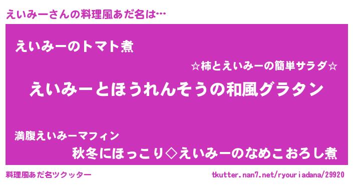 | 意味不明あだ名 | 『つくし科えいみー属』『自称えいみー』 |