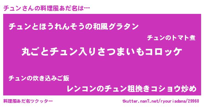 | 男性向けラノベタイトル風あだ名 | 『この素晴らしい世界にチュンを!』 |