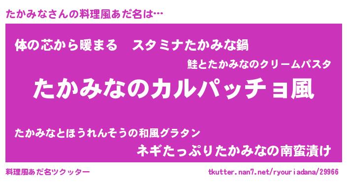 | 女子向けラノベタイトル風あだ名 | 『たかみなが死なない童話 林檎のたかみなの診療簿』 |