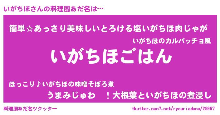 | 男性向けラノベタイトル風あだ名 | 『イガチホスレイヤー』『いがちほの憂鬱』 |