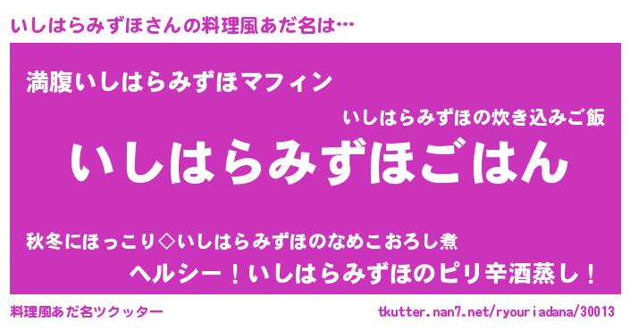 | ヘコむあだ名 | 『いしはらみずほ(爆)』『いしっ子』 |