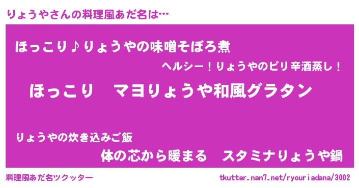 | ヒーロー風カッコイイあだ名 | 『仮面リョダー』『スーパーリョウヤ』 |