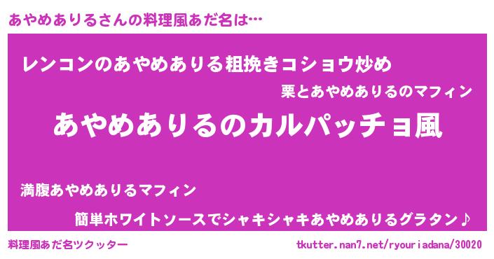 | 意味不明あだ名 | 『住所不定無職あやめありる(50歳)』 |