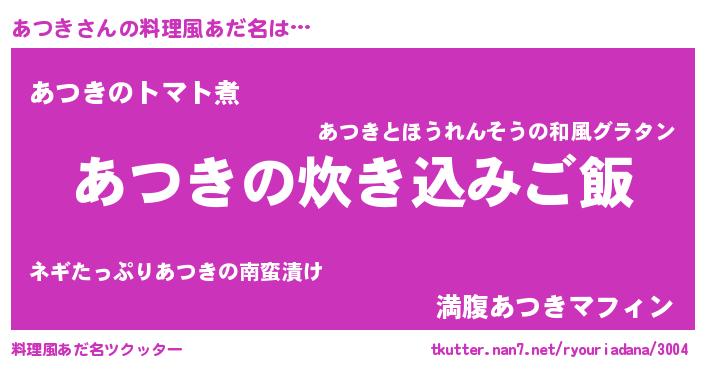 | 欧米人風あだ名 | 『あつき・ステッグマイヤー』 |