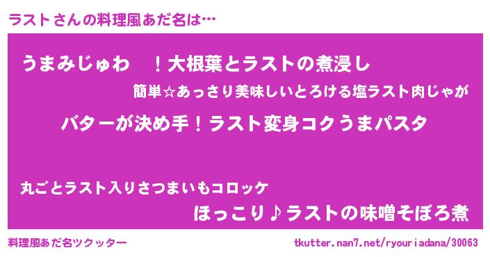 | 女子向けラノベタイトル風あだ名 | 『ラスト恋絵巻』『ラストの婚約者』 |