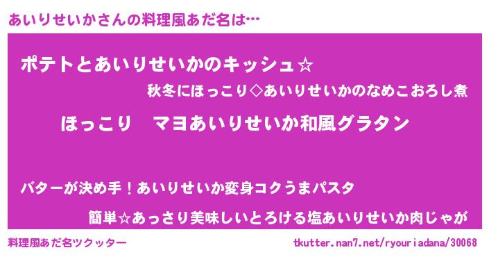 | ヘコむあだ名 | 『あい太郎』『あいりせいか(笑)』 |