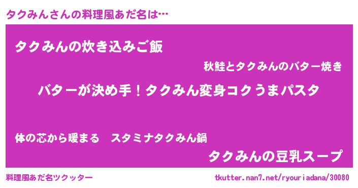 | 女子向けラノベタイトル風あだ名 | 『タクみん恋絵巻』『タクみんの契約王妃』 |