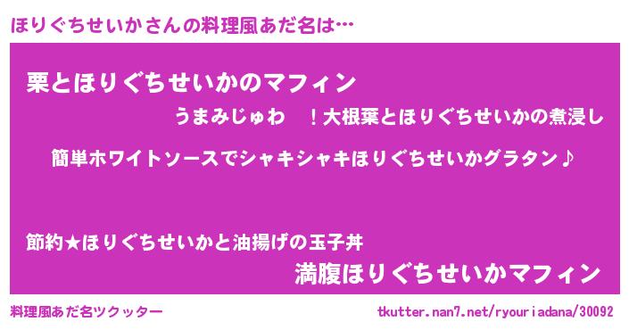 | 男性向けラノベタイトル風あだ名 | 『ほりぐちせいかの嫁は女の子じゃないと思った?』 |