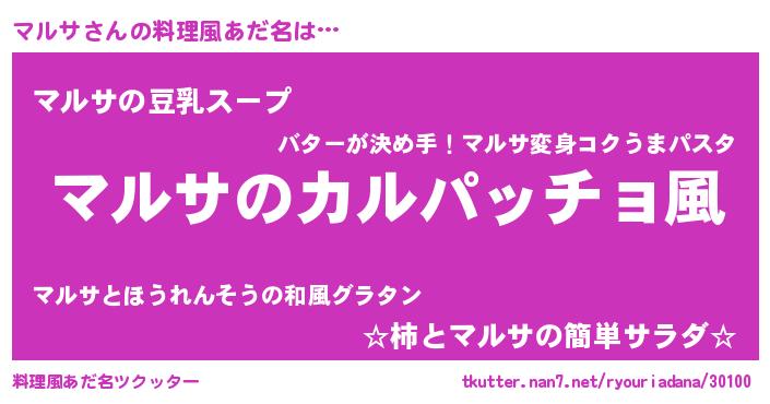 | 女子向けラノベタイトル風あだ名 | 『マルサが死なない童話 林檎のマルサの診療簿』 |