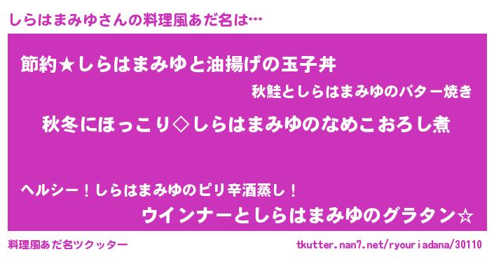 | ヘコむあだ名 | 『しらにー』『なまこ酢』『しらを』 |