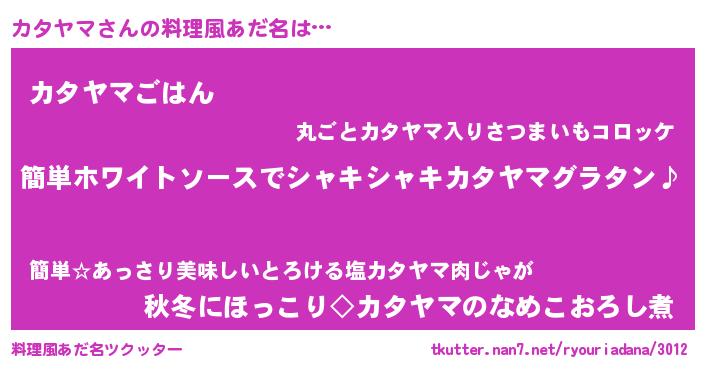 | 男性向けラノベタイトル風あだ名 | 『カタヤマの嫁は女の子じゃないと思った?』 |
