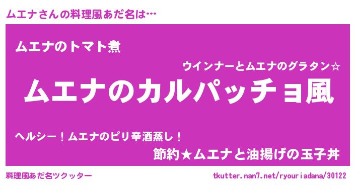 | 意味不明あだ名 | 『住所不定無職ムエナ(68歳)』『自称ムエナ』 |
