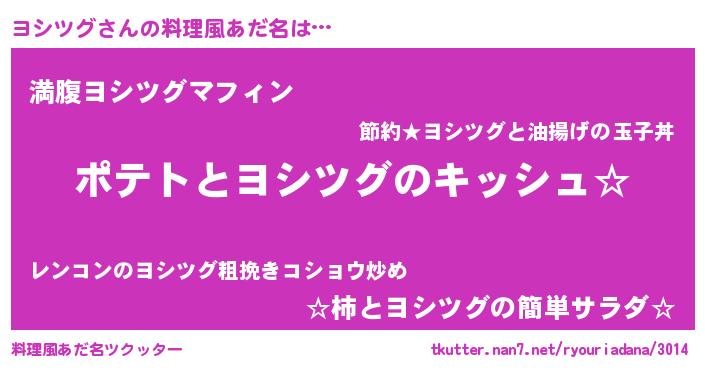 | ファンタジー風あだ名 | 『ファントムヨシス』『ヨシディッシュ』 |