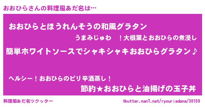 | 男性向けラノベタイトル風あだ名 | 『おおひらの嫁は女の子じゃないと思った?』 |