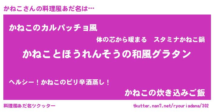 | 女子向けラノベタイトル風あだ名 | 『かねこの玉の輿計画!』『闇のかねこ』 |