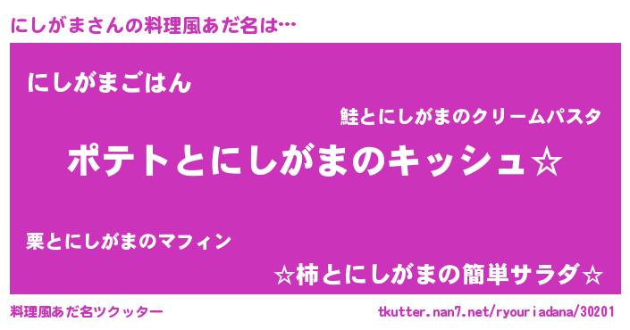 | 胡散臭い通販商品みたいなあだ名 | 『伝統あるサプリメント…その名も「にしがま」』 |