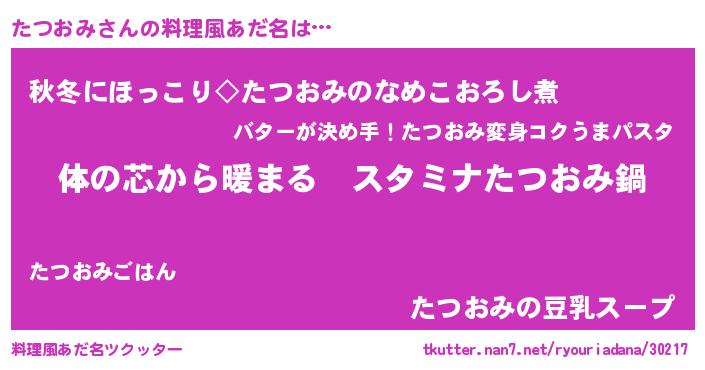 | 男性向けラノベタイトル風あだ名 | 『やはりたつおみの青春ラブコメはまちがっている 』 |