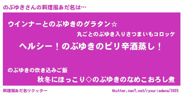 | ヒーロー風カッコイイあだ名 | 『サイバー戦士ノブユキ』『仮面ノブダー』 |