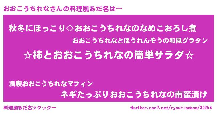 | ヒーロー風カッコイイあだ名 | 『スーパーオオコウチレナ』 |
