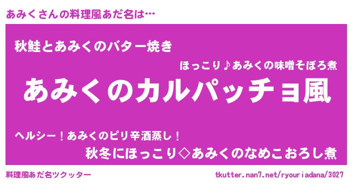 | 男性向けラノベタイトル風あだ名 | 『魔弾の王とあみく』『あみくの憂鬱』 |