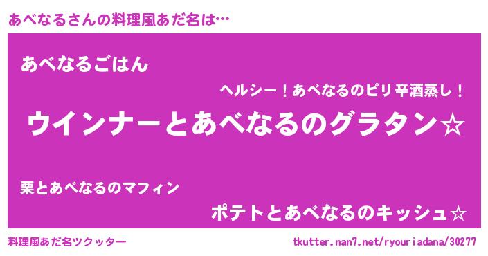 | 女子向けラノベタイトル風あだ名 | 『あべなる伯爵の花嫁』『闇のあべなる』 |
