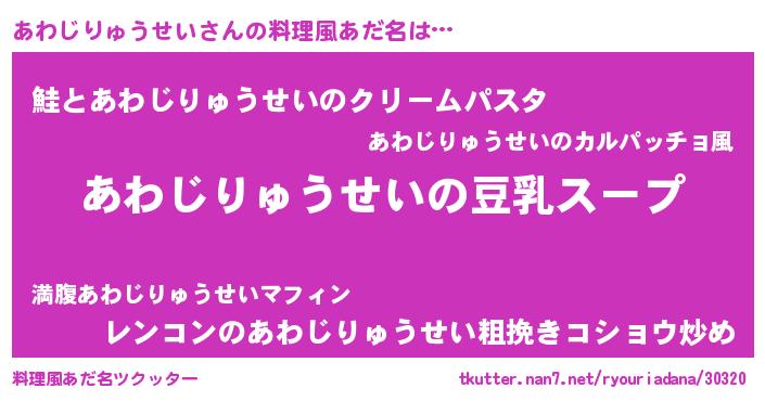 | 男性向けラノベタイトル風あだ名 | 『ダンジョンにあわじりゅうせいを求めるのは間違っているだろうか』 |