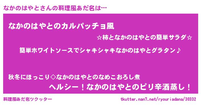 | 男性向けラノベタイトル風あだ名 | 『なかのはやとの嫁は女の子じゃないと思った?』 |