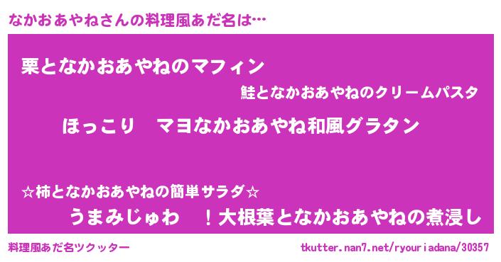 | 男性向けラノベタイトル風あだ名 | 『この素晴らしい世界になかおあやねを!』 |